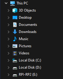 Il ne reste plus qu’à préparer le logiciel du microcontrôleur. Cette étape ne requiert pas de connaissances particulières en informatique. Il suffit de télécharger quelques fichiers et de les placer au bon endroit. Avant de commencer, brancher le raspberry pico à votre ordinateur. Les instructions suivantes sont conçues pour un PC mais seraient aussi compatibles pour IOS.
