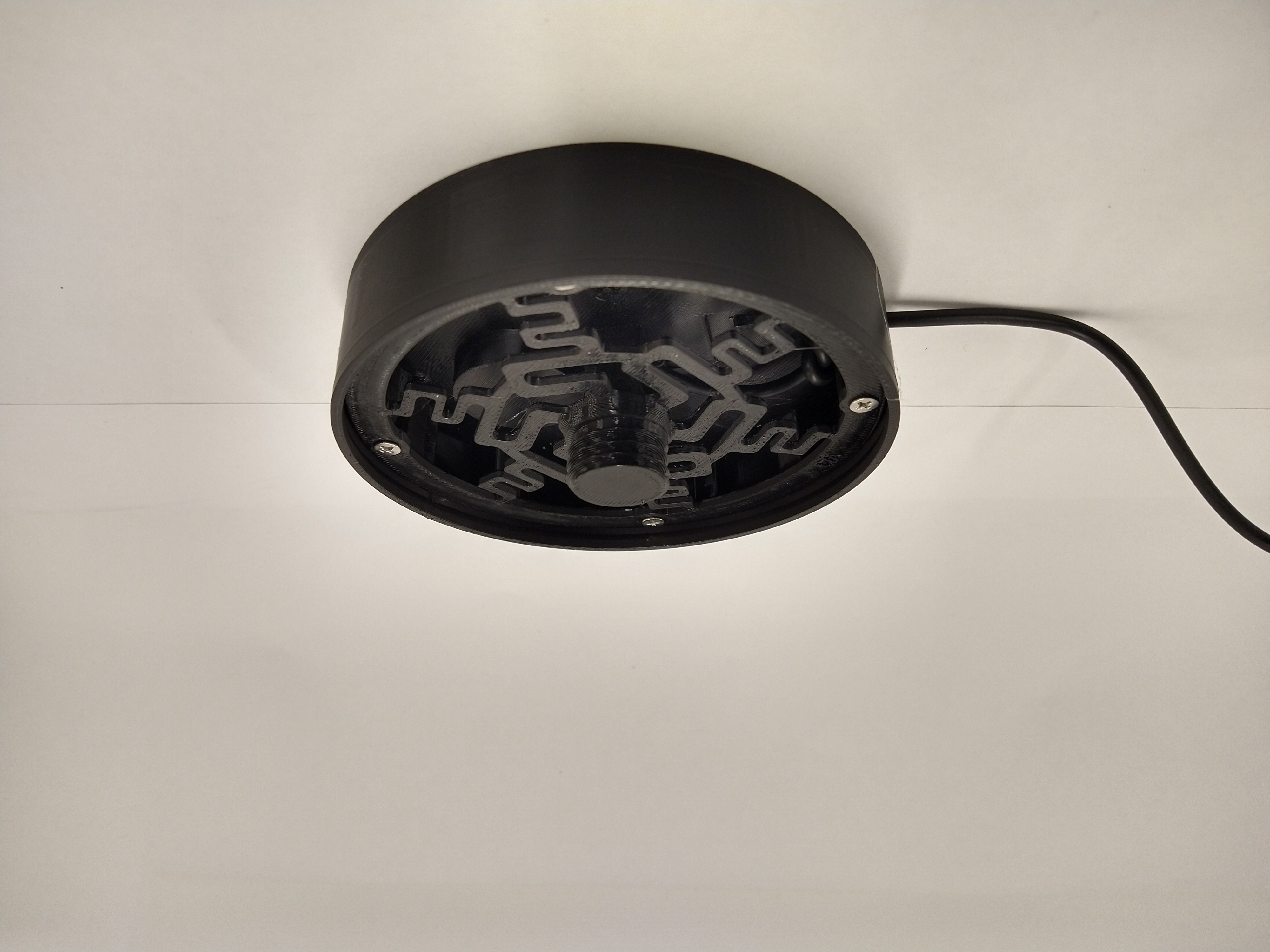 - La base s'imprime en PLA, sans support. Alternativement, une version avec des espaces pour ajouter une méthode de montage sur les côtés est aussi disponible ici.